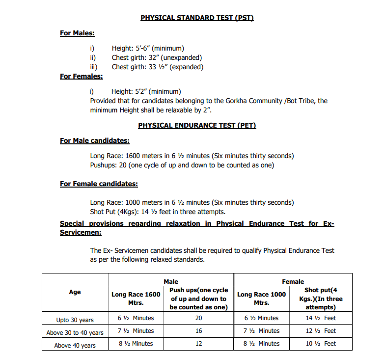 • Physical Standard Test (PST): After being selected based on merit, candidates will have to take the PST.